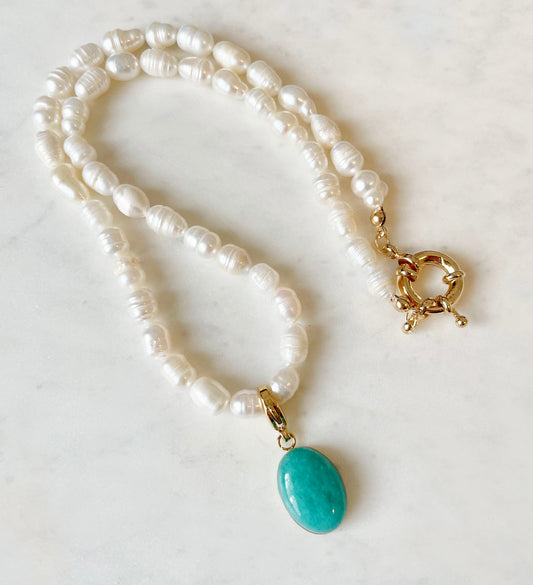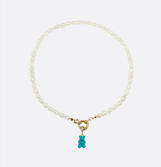 Natural Pearl Necklace with Gummy Bear - Turquoise