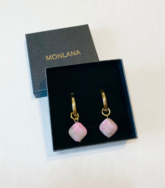 Karika Fülbevaló Pink Természetes Kővel